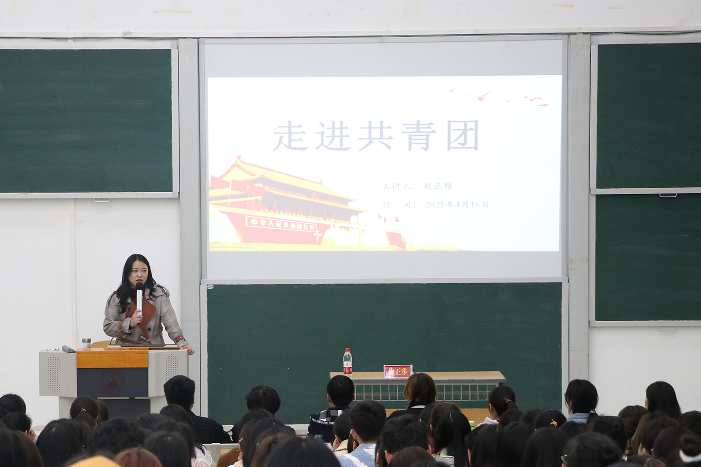 (曾美霞 饶芬)4月16日,买球第三十一期业余团校第一课在执闳楼开讲,校团委敖正雅老师担任主讲人。