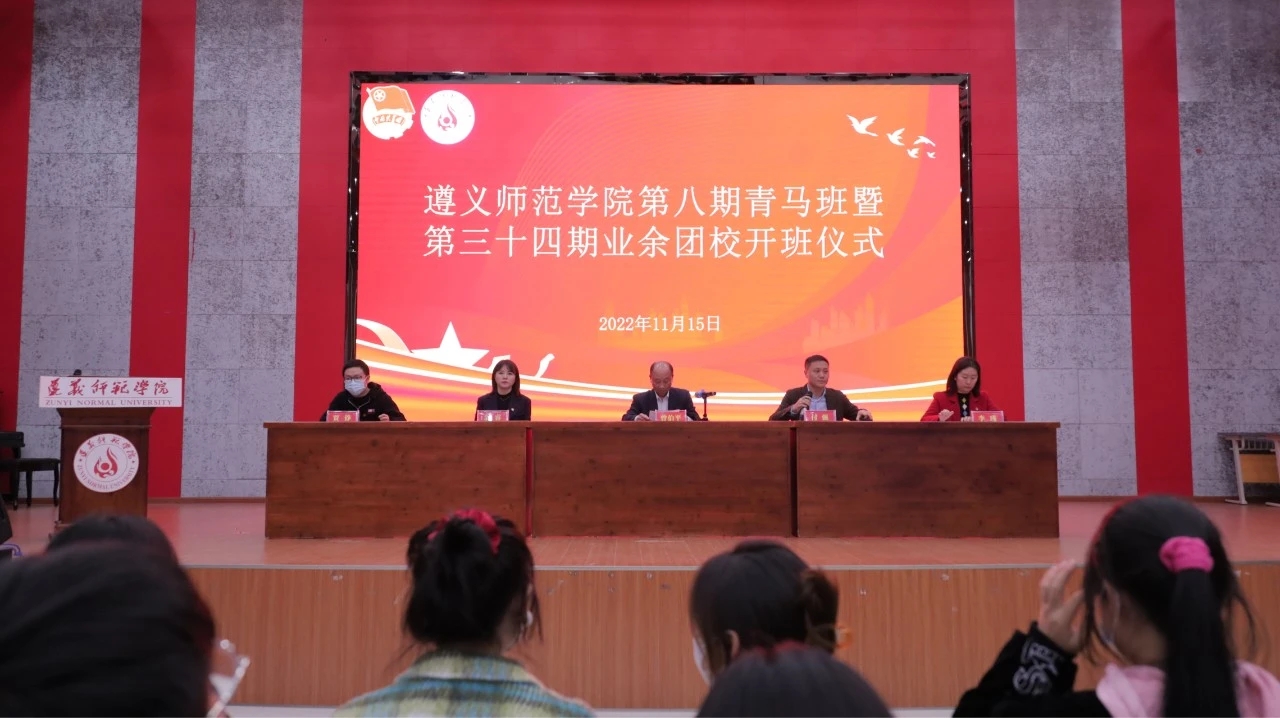 11月15日16:30分,第八期青马班暨第三十四期业余团校开班仪式在学生中心长征讲堂举行。校党委副书记曾伯平出席开班仪式。党政办公室主任、团委书记付强,团委副书记余睿、李瑾,各二级学院团总支书记(副书记),第八期青马班、第三十四期业余团校全体学员以及2022年新入团学生代表、第七期青马班优秀学员参加开班仪式。仪式由付强主持。