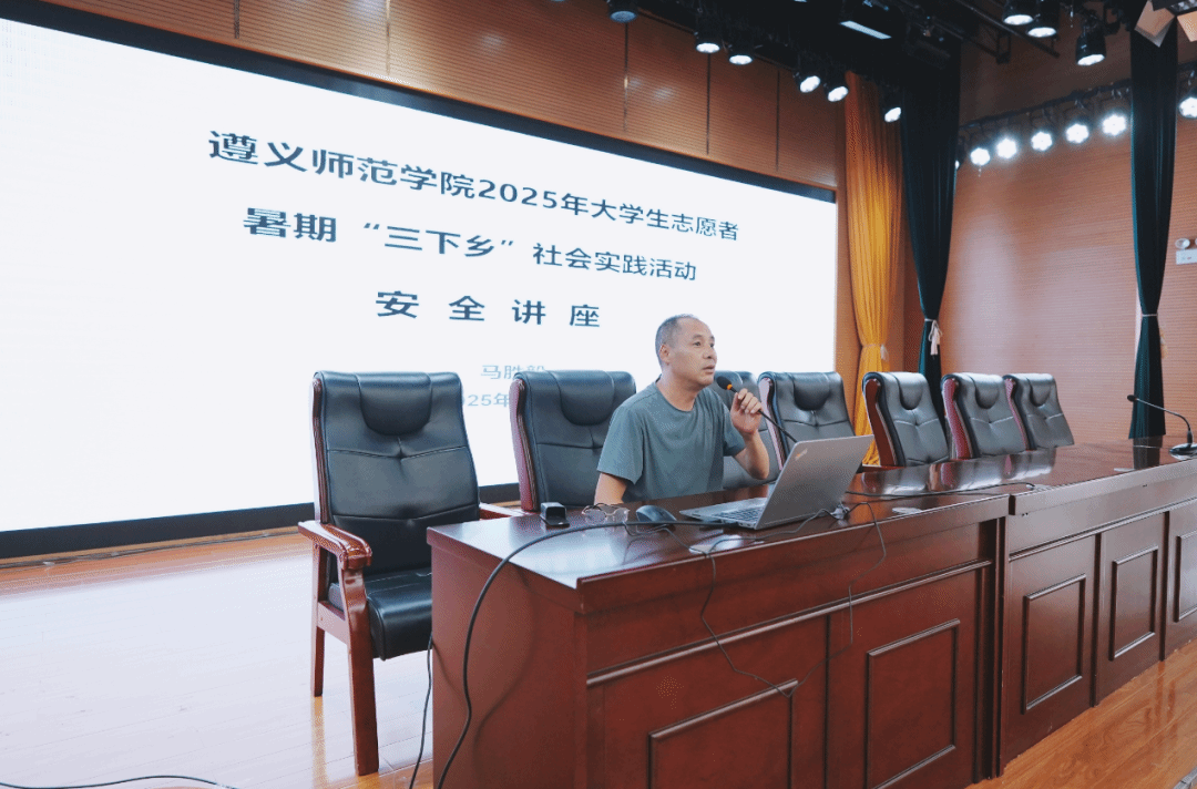 为保障2025年大学生暑期“三下乡”社会实践活动安全、有序、高效开展,7月4日下午,微信买球官方网站团委组织即将参与活动的近300名师生在学术交流中心二楼报告厅开展了安全急救教育专题培训,保卫处治安科科长马胜毅、校医院医生郑柳霞担任主讲。
