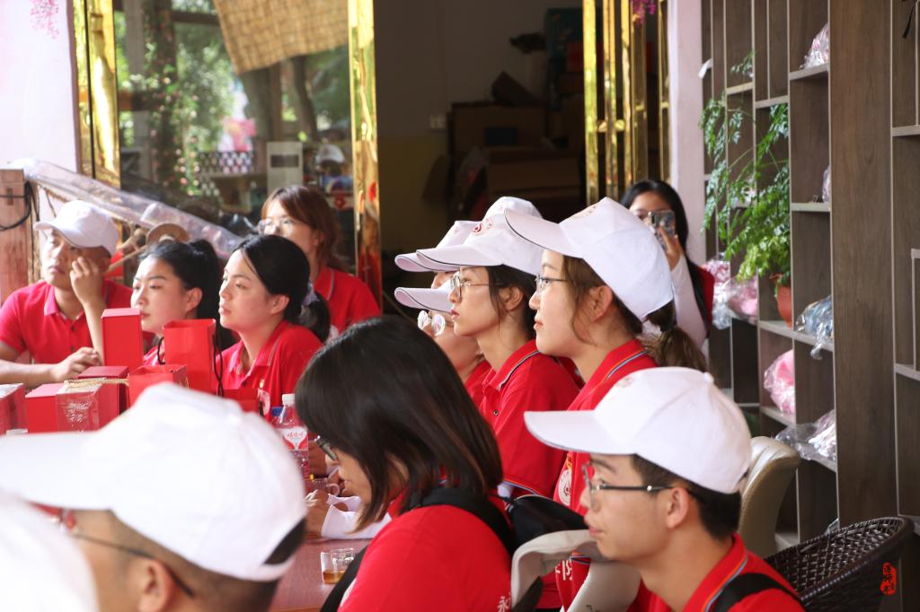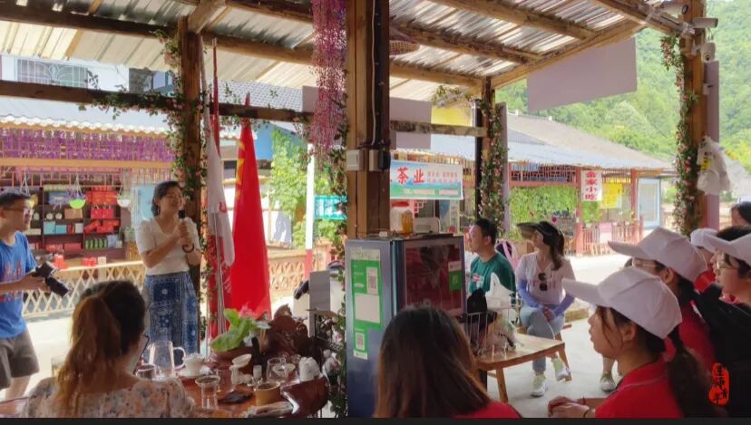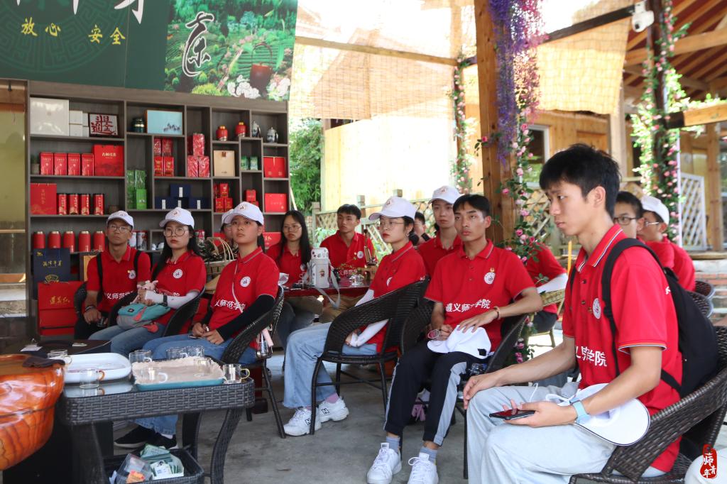 “您当初因为什么选择回乡创业呢?” “创业之路,您都做了哪些事呢?”……学生们围着黎彩芬提着各种问题。“大学毕业后我选择回到湄潭,用自己所学知识,力所能及地为家乡发展贡献自己的力量,改变贫穷落后的生活。我之前是从事教育工作,后来开始创作农民画,并创立了名为‘草根艺苑’的旅游商品手工坊,研究怎么把草鞋以时下年轻人能接受的方式呈现出来,后来被越来越多的人认可,甚至投入手工量产,带动了乡亲们通过双手创收。慢慢的,家乡美起来了,乡民收入也增加了,我很有成就感!”