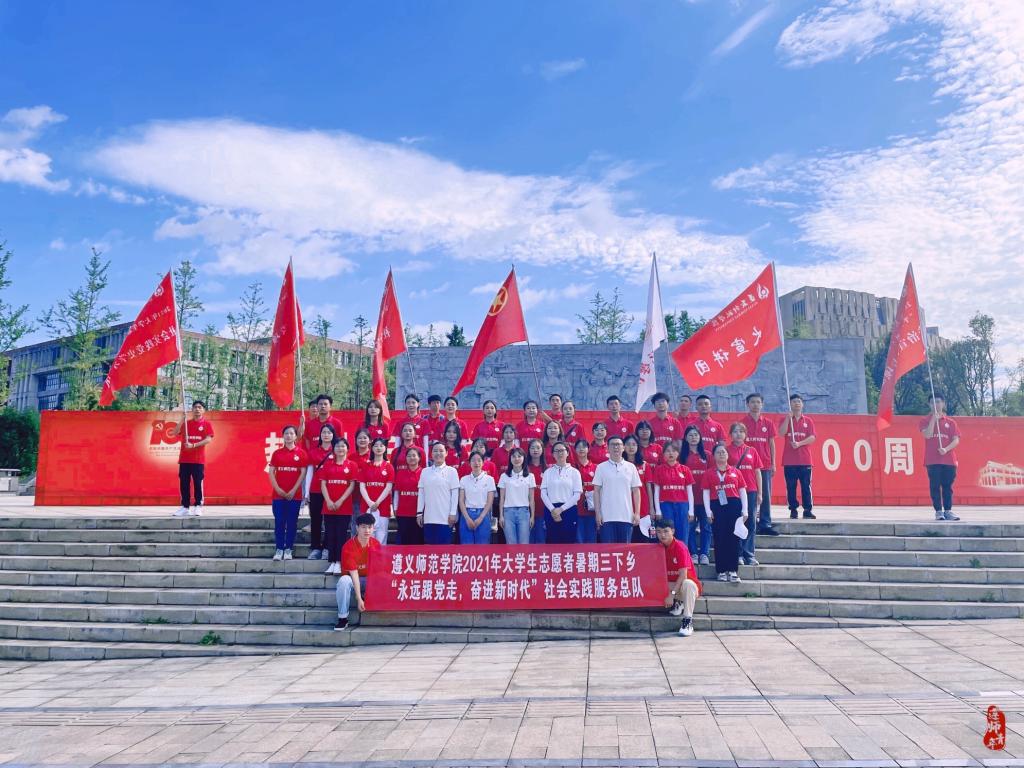 2021年7月11日上午,买球大学生志愿者2021年暑期“三下乡”社会实践活动总队在西大门整装出发前往志愿服务地湄潭。
