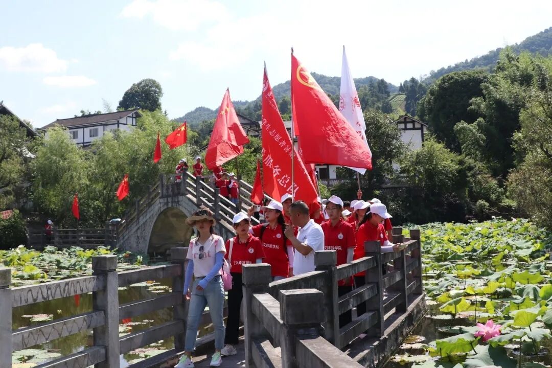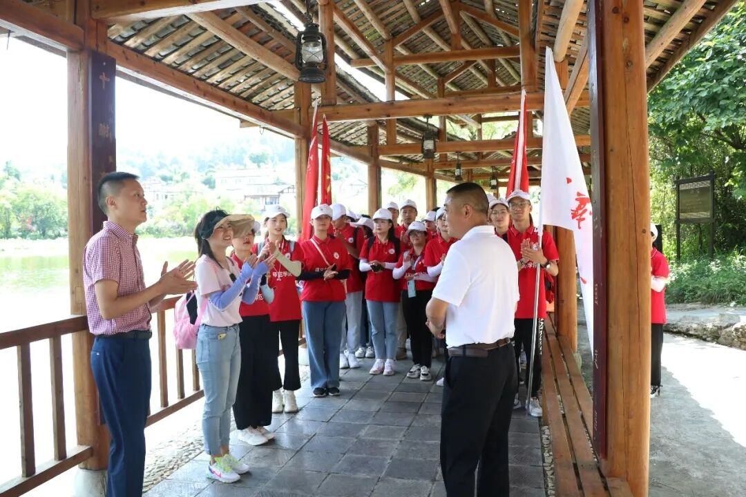 为引导和帮助广大青年学生上好与现实相结合的“大思政课”,在社会课堂中学党史、强信念、跟党走,努力成为担当民族复兴大任的时代新人,2021年7月12日上午,在团委书记付强、副书记余睿以及校团委全体老师的带领下,微信买球官方网站2021年大学生暑期“三下乡”社会实践总队来到了湄潭县首批黔北民居新村示范点之一,也是“十谢共产党”发祥地田家沟进行党史学习考察。