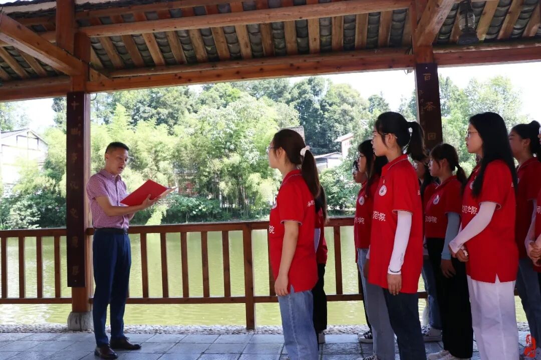 随后,在十谢亭里,校团委书记付强主持召开了2021年大学生志愿者暑期“三下乡”社会实践活动总队临时团支部成立大会。会上,付强书记宣读关于组建临时团支部的批复,带领团员重温入团誓词,并领学习近平总书记在中国共产党成立100周年庆祝大会上的讲话。他强调,当代大学生,应该在社会实践中践行党员不畏难、不畏苦、不畏艰辛的精神,发挥先锋模范带头作用,增长才干,敢于奉献。信党爱党为党,把伟大建党精神继承下去发扬光大,应用于学习生活和工作岗位中,展示买球学子青春风采。