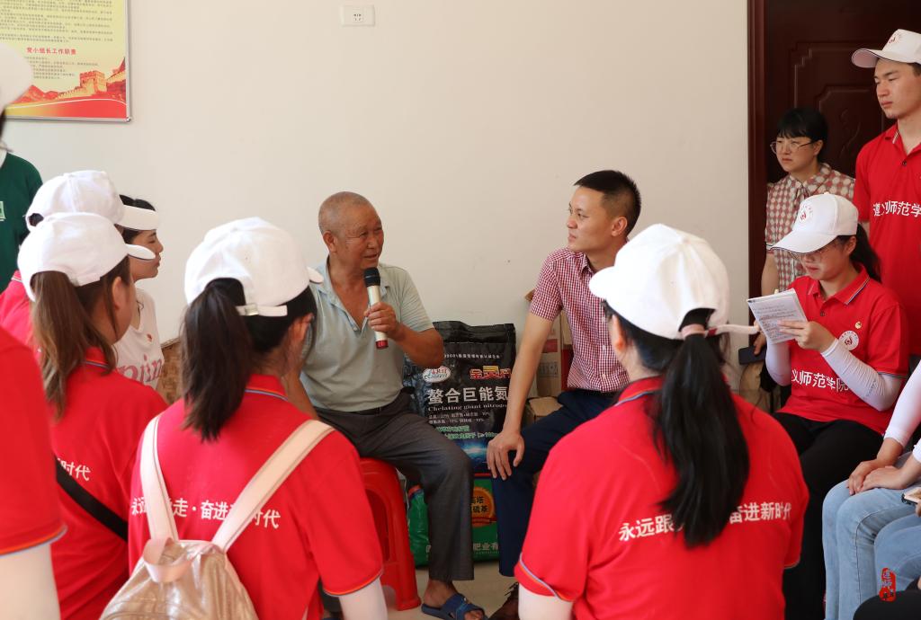 成立大会后,同学们拜访了党龄50年的老党员伍远华,聆听他与党的故事。“入党不是为了荣华富贵,而是为了响应毛主席‘为人民服务’的号召,作为党员,就要想着如何去为人民谋幸福!”党员伍远华坚定的说。听着老人的讲述,师生们的心底仿佛浮现出一幅历史长卷。老党员们的人生经历就像是一部基层视角的党史,记录了过去,也描绘了新时代、新农村的美好前景。