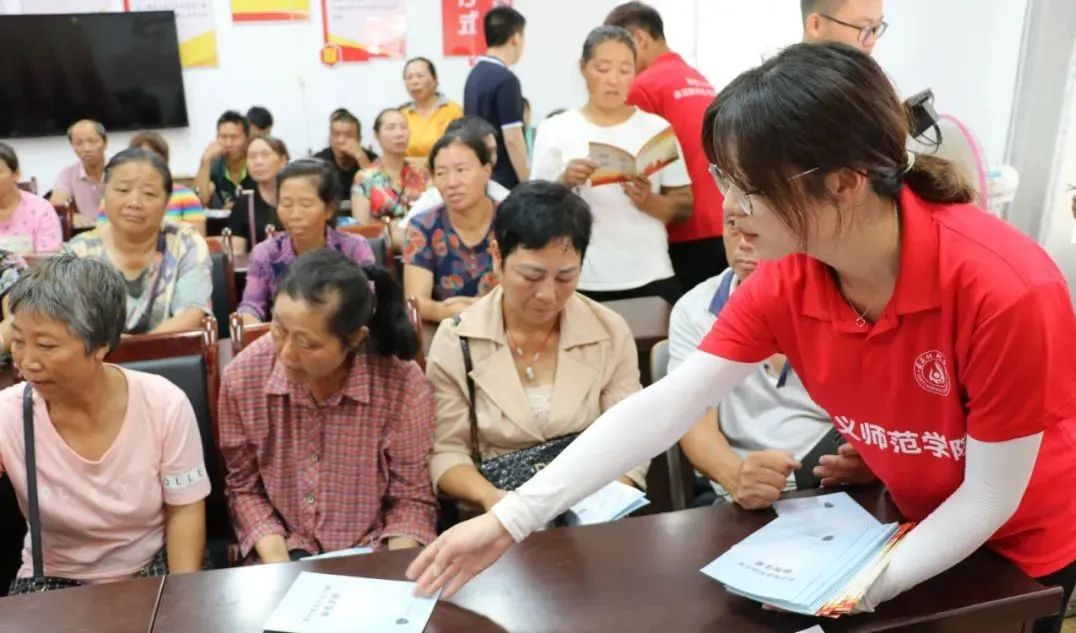 微信买球官方网站多支实践队深入各乡镇、社区、学校,通过入户宣传、集中宣讲、发放宣传手册的方式面向当地群众、中小学生开展理论、法治、禁毒防艾、心理健康宣传宣讲共计70多次,志愿者们根据宣讲对象的特点,将理论、法律等知识用生动、接地气的案例,通过互动性、探究性较强的方式,从小切口讲述大故事,让广大群众听起来丝毫不觉得冗长,部分内容还因地制宜地使用本地方言讲述,把“书面语”变为“大白话”,让宣讲更加生动鲜活,把党的理论、法律知识和乡村振兴故事送进社区、校园和乡村。