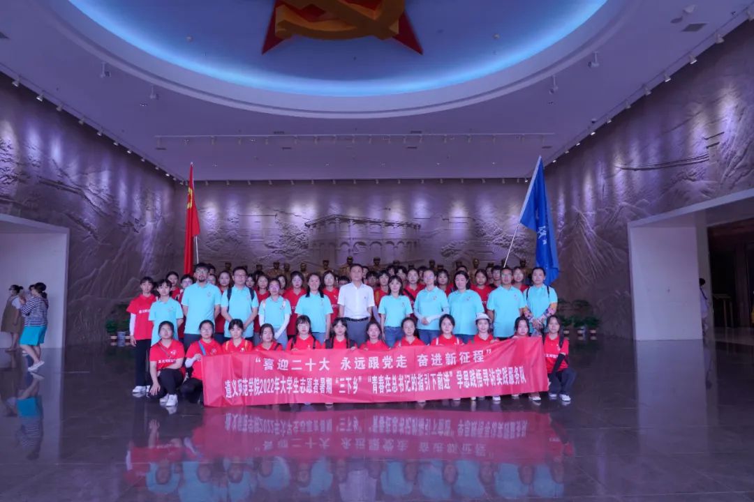 为重温习近平总书记在贵州考察足迹,通过实地探访、历史寻访等方式,深刻领会习近平总书记重要论述和批示指示精神,以实践行动感悟习近平总书记的人民情怀、世界胸怀和历史担当。微信买球官方网站2022年大学生志愿者暑期“三下乡”社会实践去到遵义会议会址、遵义市播州区花茂村开展学思践悟寻访活动。并结合习近平总书记关于教育和关于青年工作的重要论述深入一线进行宣讲,教育引导广大群众和青年学生衷心拥护“两个确立”,忠诚践行“两个维护”。同时开展“重走红色之路,重温红色记忆”“走访老党员,感受新农村”“学习先进典型事迹”等活动,在红色旅程中追寻先辈足迹,在走访调研中感受时代变迁,在学习中感悟奉献精神、在创新实践中传承红色基因。