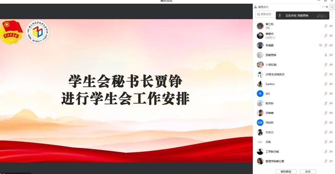 贾铮对上学期学生会组织的工作对给予积极肯定,同时对新学期的工作提出三点要求:一是要各部门认真贯彻执行学校决策部署,认真落实工作要点,尽快调整心态,立足岗位,尽好职责,确保新学期工作有序开展。二是根据疫情防控要求,学生干部要以严明的纪律和负责任的态度认真落实日常报备制度,做好防范预案,务必坚持信息沟通机制,及时报告有关情况,做好舆情预判、监管与疏导工作。三是学生会工作人员应以“我为同学做件事”为抓手,扎根同学、服务同学、勤奋工作、求真务实。