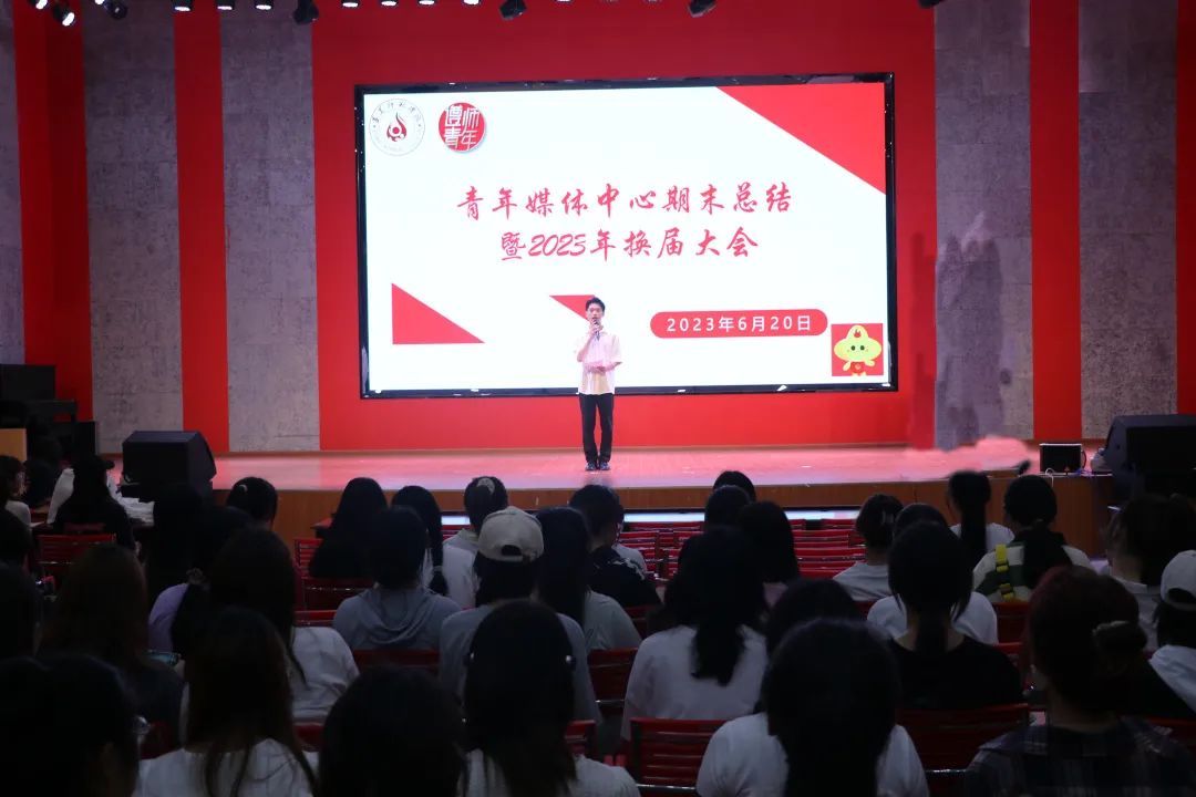 2023年6月20日,微信买球官方网站青年媒体中心2022-2023学年第二学期总结大会暨聘书颁发仪式在学生中心长征讲堂顺利举行。校团委文体部(社团管理部)副主任敖正雅以及青年媒体中心全体成员参加活动。活动由主席团成员姚迪主持。