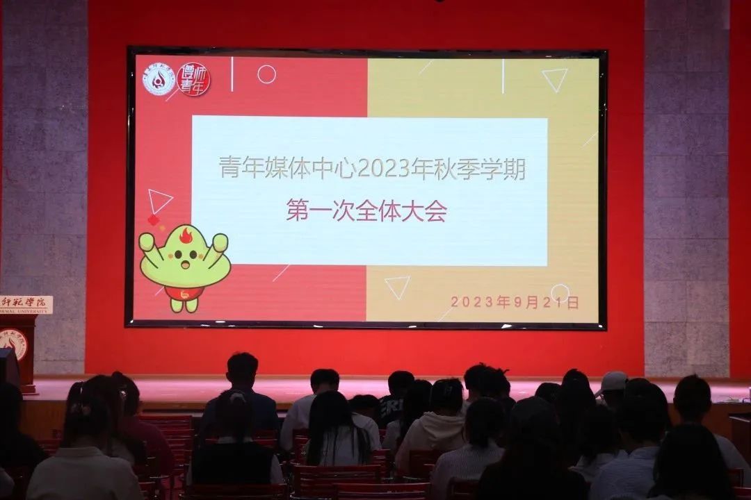2023年9月21日晚,青年媒体中心2023秋季学期第一次全体大会在学生中心长征讲堂召开。团委副书记余睿,文体部(社团管理部)副主任敖正雅以及青年媒体中心全体记者参加会议,会议由青年媒体中心主任姚迪主持。