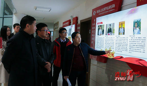 在参观我院百年广场,感受红色文化浸润校园的浓厚氛围后,景应忠前往信息工程学院、教师教育学院、图书馆、美术学院、中国共产党革命精神与文化资源研究中心、马克思主义学院等单位,观看了“红色芯片”图片展、红色剪纸作品展、诗教工作成果陈列室、“红色记忆”作品展、红色文化研究资料室等,并与相关教师代表进行了座谈,全方位、多角度对我院红色文化育人作了了解。