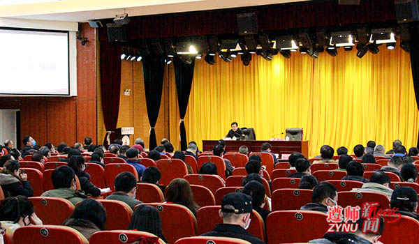 学校党委副书记洪涛主持报告会,党委委员、副校长娄胜霞、曾伯平、胡贵勇,党委委员、纪委书记刘剑,副校长张鹏,党委委员、组织部部长、统战部部长王明述,副科级以上干部,学生党员代表聆听报告。