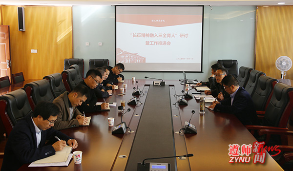 11月11日下午,学院长征精神融入“三全育人”研讨暨工作推进会在行政楼321会议室召开,学院副院长张鹏,教务处、党委宣传部、团委、马克思主义学院、中国共产党革命精神与文化资源研究中心主要负责人等参加会议。