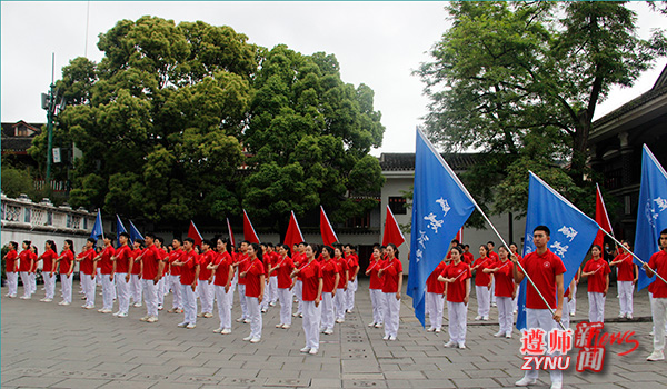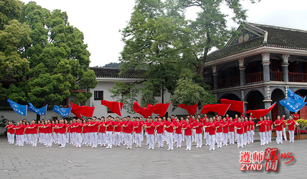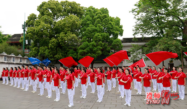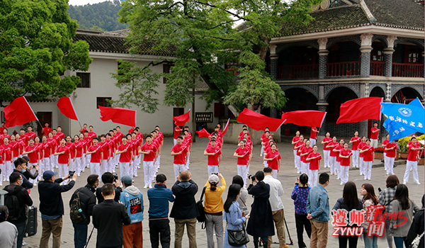 4月25日下午,107名微信买球官方网站大学生艺术团的同学在遵义会议会址唱响红歌,他们整齐划一的动作和昂扬奋发的精气神引得游客纷纷驻足围观。