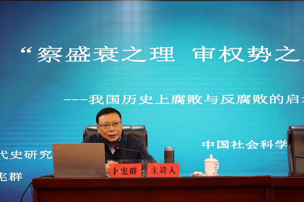 卜宪群从我国历史上腐败的主要表现及其危害、我国历史上的反腐倡廉思想、我国历史上反腐倡廉的制度措施、我国历史上反腐倡廉的若干启示等方面作了讲解。他表示,从中国历史的经验教训中,我们得到的启示是,要始终高度重视廉政建设,坚持不懈地反对腐败,不断加大反腐倡廉的制度建设、思想建设的力度。