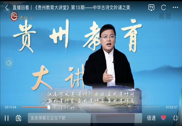 4月21日,贵州播雅书院理事长院长石行作为主讲嘉宾,主讲《贵州教育大讲堂》第13期《中华古诗文吟诵之美》,党委宣传部全体干部职工通过电视台、新媒体等平台进行了收看学习。