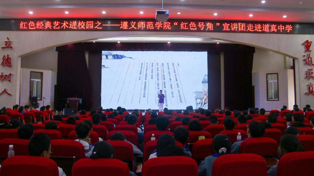 13时30分,红色宣讲进校园活动在道真中学礼堂举行。