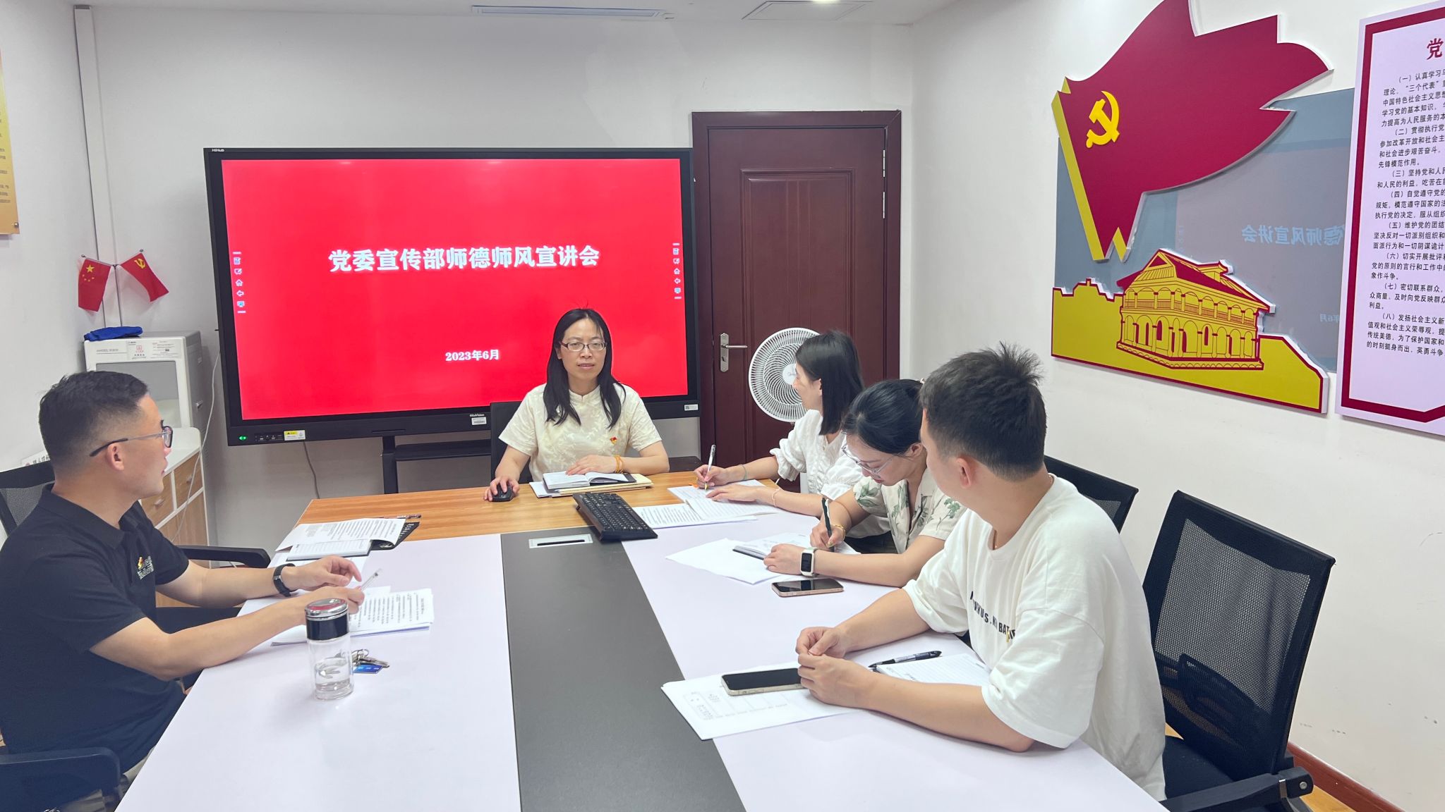 为贯彻落实学校大力加强和全面推进师德师风建设工作要求,抓好师德师风专项治理工作,6月28日,党委宣传部组织开展师德师风宣讲报告会。党委宣传部师德师风监督员唐燕飞进行宣讲,全体教职工聆听宣讲。