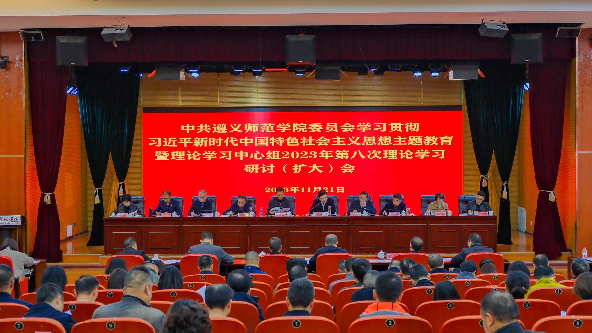 11月21日上午,中共微信买球官方网站委员会理论学习中心组2023年第八次学习(扩大)会在学术交流中心报告厅召开。省教育厅正厅长级督学、省委教育工委委员王碧海,省委第二巡回督导组组员、六盘水市国防动员办公室二级调研员淳廷勇,省教育厅发展规划处三级调研员黄烈锋,市委教育工委副书记、市教体局党组成员刘先逊到会督导。