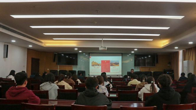 11月27日,学校党委委员、宣传部部长王春华在行政楼214会议室讲授题为《坚持用习近平新时代中国特色社会主义思想凝心铸魂 不断推动新时代宣传思想工作高质量发展》的党课。宣传部党支部全体党员及融媒体中心学生记者代表到场聆听。