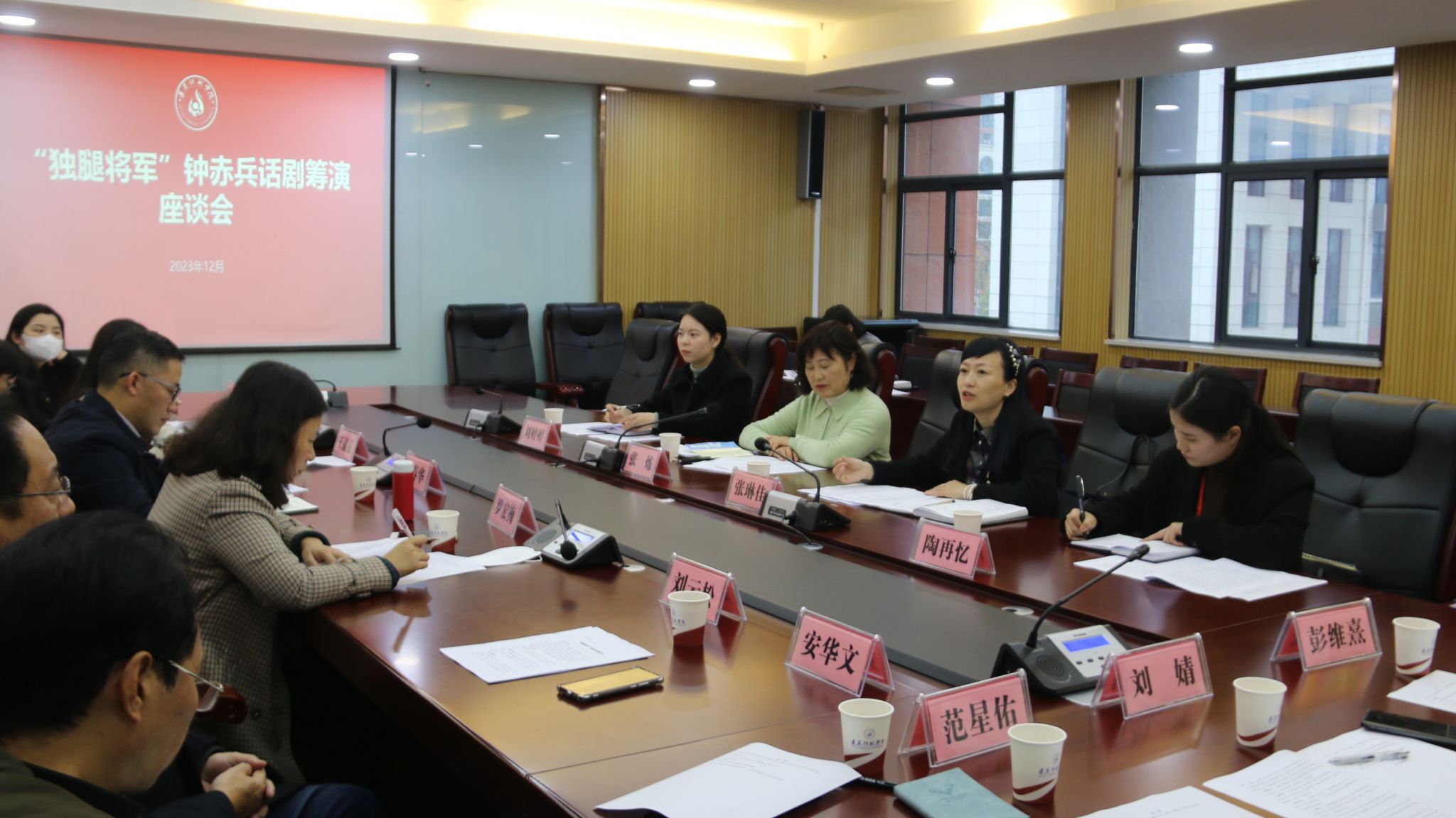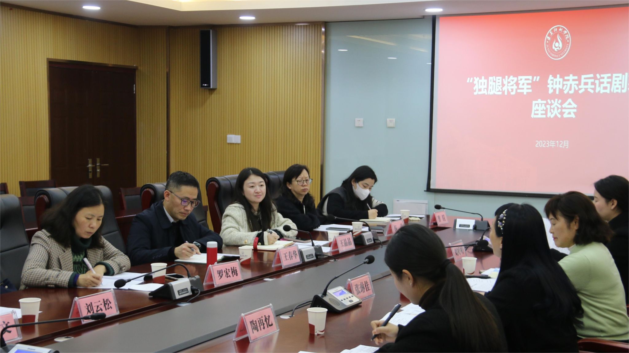 12月15日下午,“独腿将军”钟赤兵话剧筹演座谈会在行政楼321会议室举行。遵义市中共党史学会副会长、遵义市党史办原主任张炼,贵州长征干部学院副院长张琳佳,贵州长征干部学院教学科研部负责人刘婷婷,贵州长征干部学院教务部工作负责人陶再忆,微信买球官方网站党委委员、宣传部部长王春华,红色经典艺术教育示范基地主任、宣传部副部长王晶晶以及人文与传媒学院、教师教育学院、美术学院、音乐与舞蹈学院、红色经典艺术教育示范基地等二级单位负责人及代表参加会议。王晶晶主持会议。