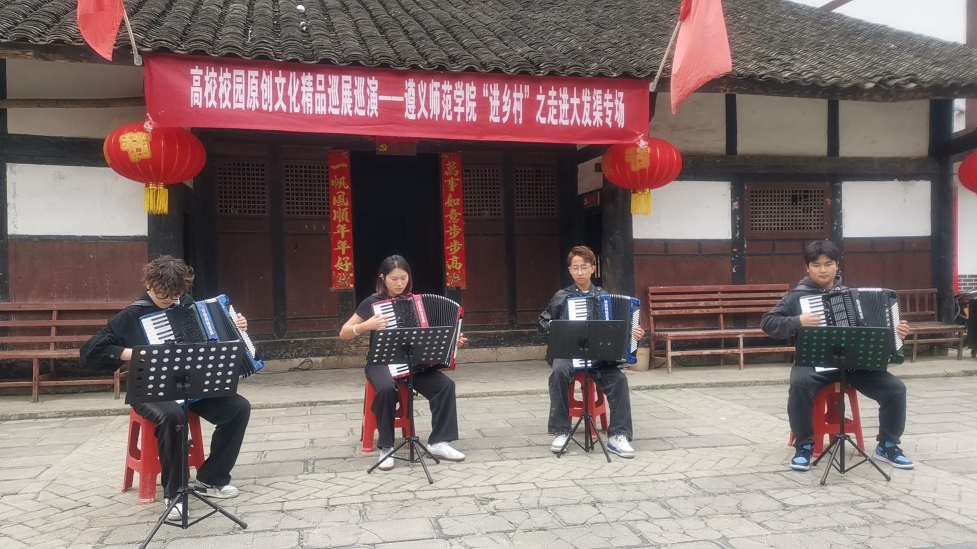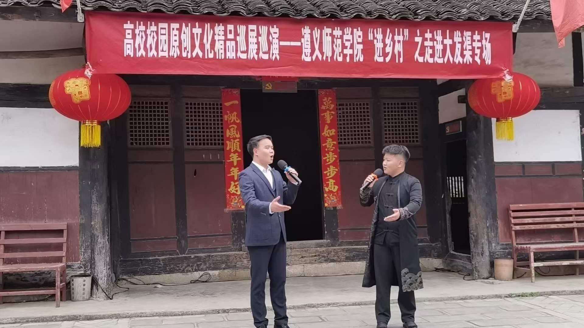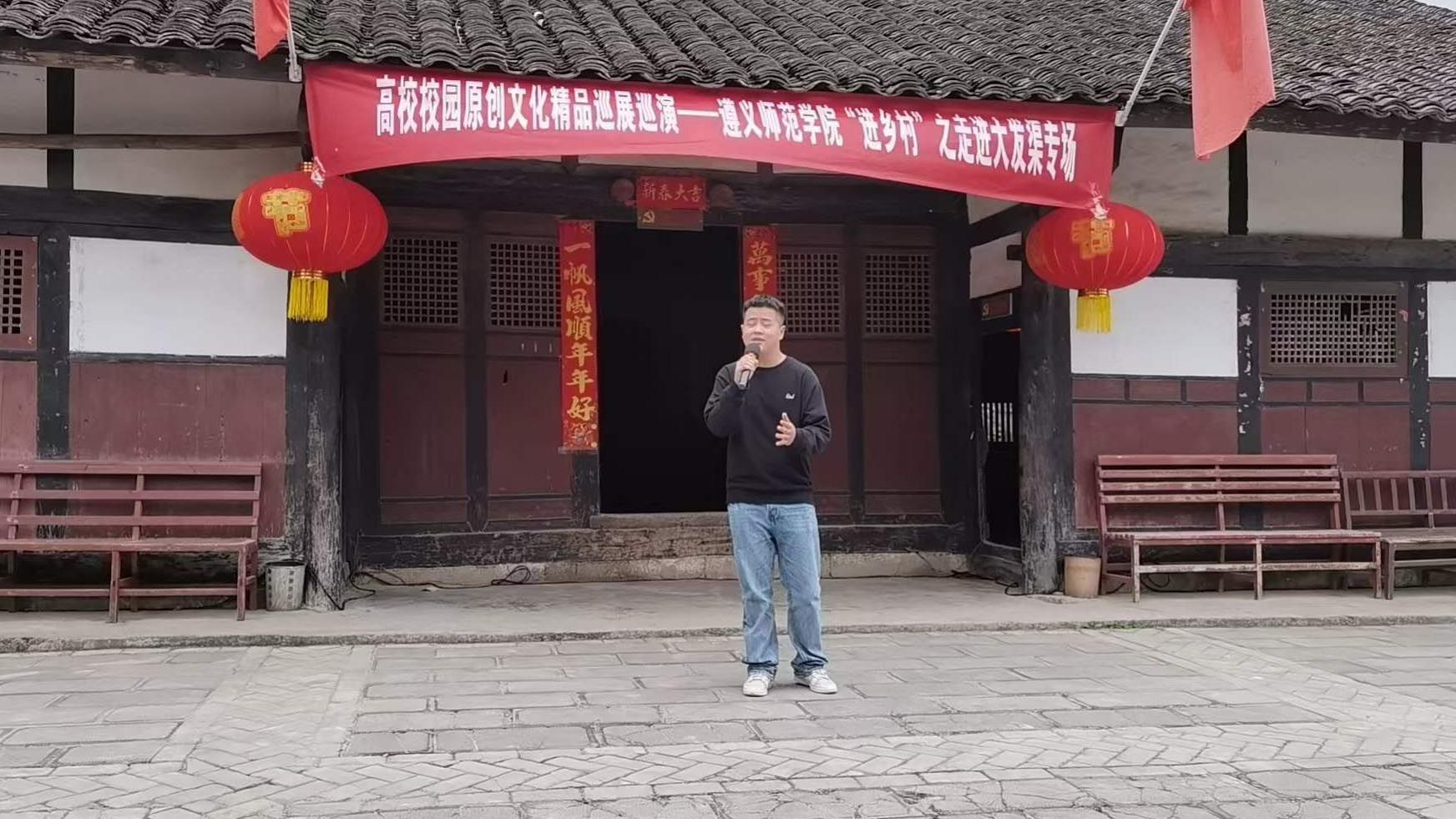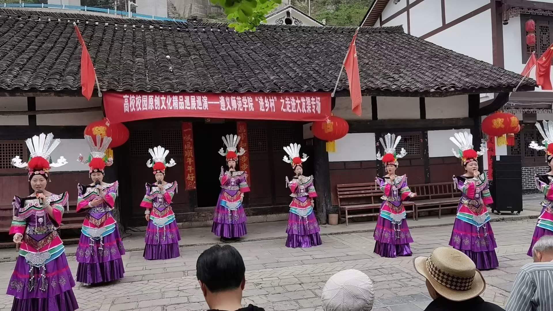 4月12日,微信买球官方网站校园原创文化精品巡展巡演走进“大发渠”所在地——播州区平正仡佬族乡团结村,为“七一勋章”获得者、“时代楷模”黄大发等当地村民带来一场小型综合文艺演出。