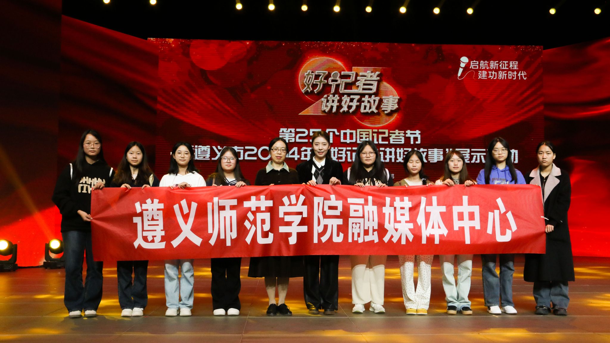 遵义师范学校党委宣传部副部长唐燕飞、人文与传媒学院博士教师陈燕受邀担任评委,融媒体中心学生记者代表、人文与传媒学院学生近40人到场观看。