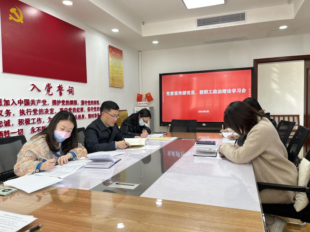 2月25日,党委宣传部在行政楼304会议室召开2022年第1次教职工理论学习会暨主题党日活动。党委宣传部部长王春华主持,全体干部职工参加。