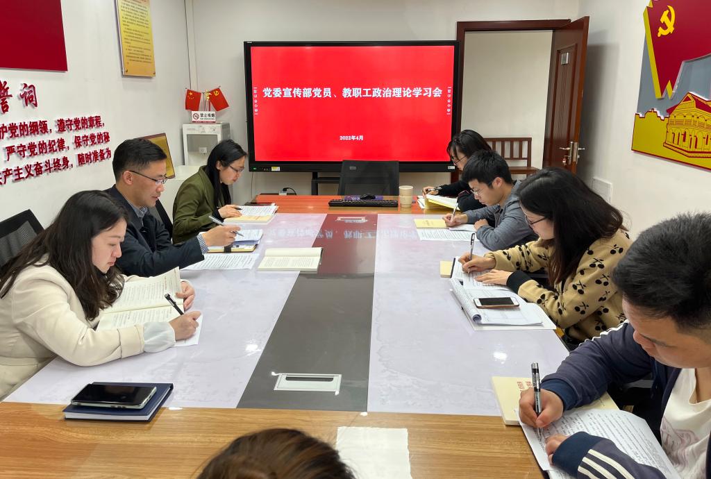 4月13日,党委宣传部在行政楼304会议室召开2022年第4次教职工理论学习会。党委宣传部部长王春华主持,全体干部职工参加。