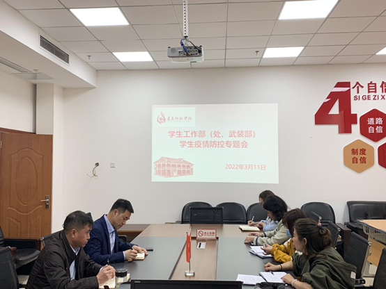 2022年3月11日上午,学生工作部(处、武装部)召开部(处)务会,专题研判学校当前学生疫情防控形式。随后,在学生中心405会议室组织召开学生疫情防控专题会。会议由学生工作部部长李华禄主持,各二级学院党委(党总支)副书记、学生科科长(负责人)参会。