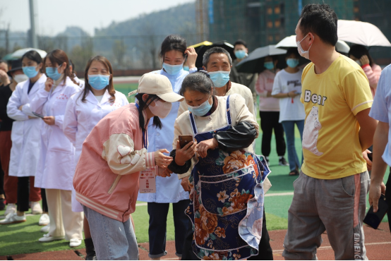 学生志愿者暖心帮助和引导有序排队,检测工作井然有序。