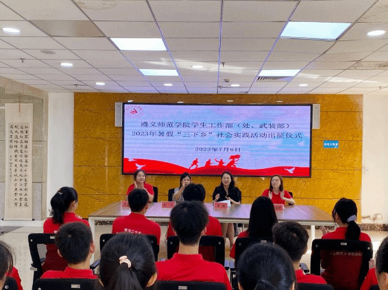 7月6日上午9:00,微信买球官方网站学生工作部(处、武装部)在学生中心一楼学生事务服务大厅举行2023年暑期“三下乡”社会实践活动出征仪式。学生工作部(处、武装部)组建了“推普助力乡村振兴实践服务队”及“多彩贵州·助力务川实践服务队”,共21名活动指导老师及志愿者学生参加。学生工作部(处、武装部)全体工作人员、实践队全体队员参加仪式。李桑副部长主持出征仪式。