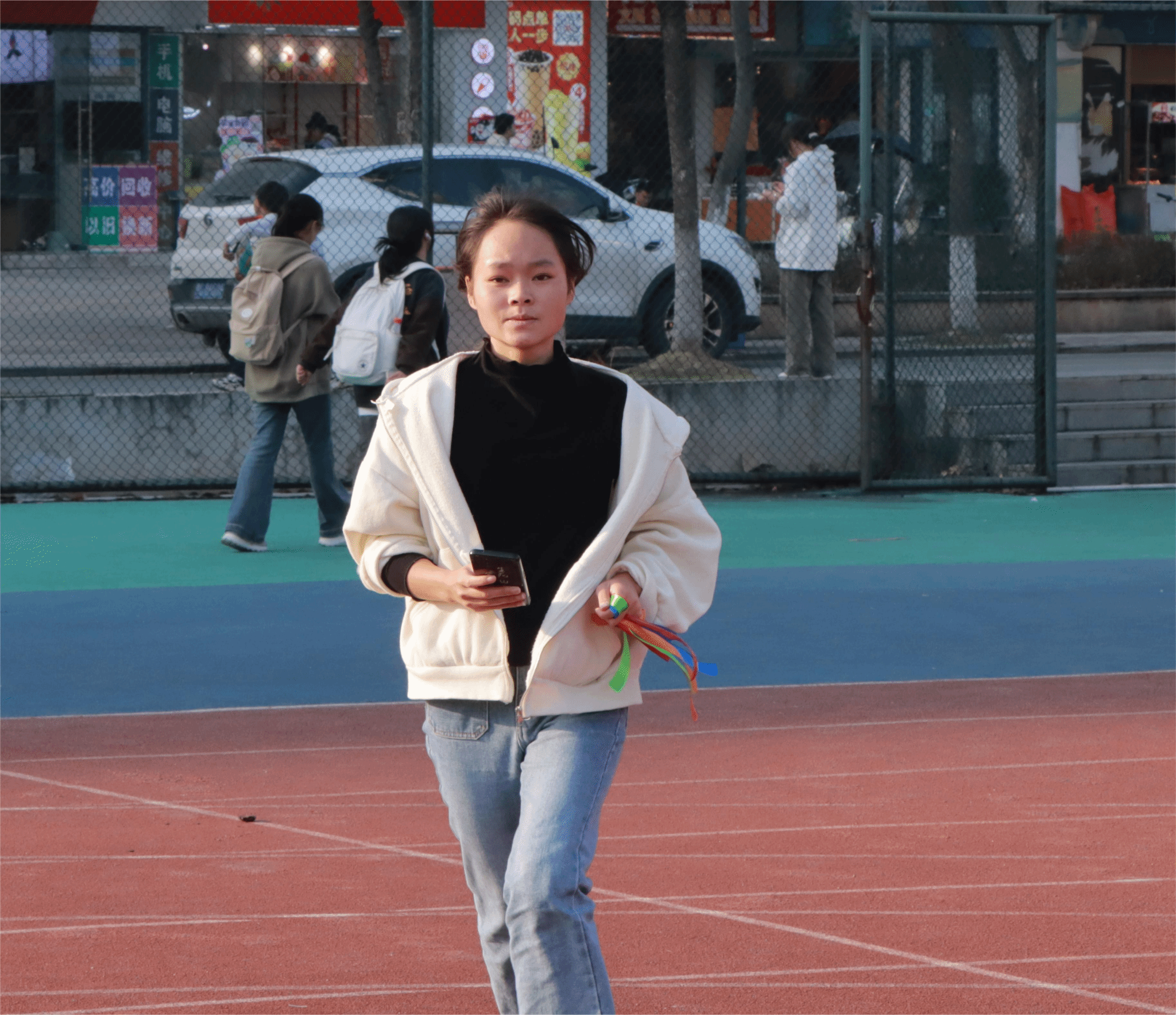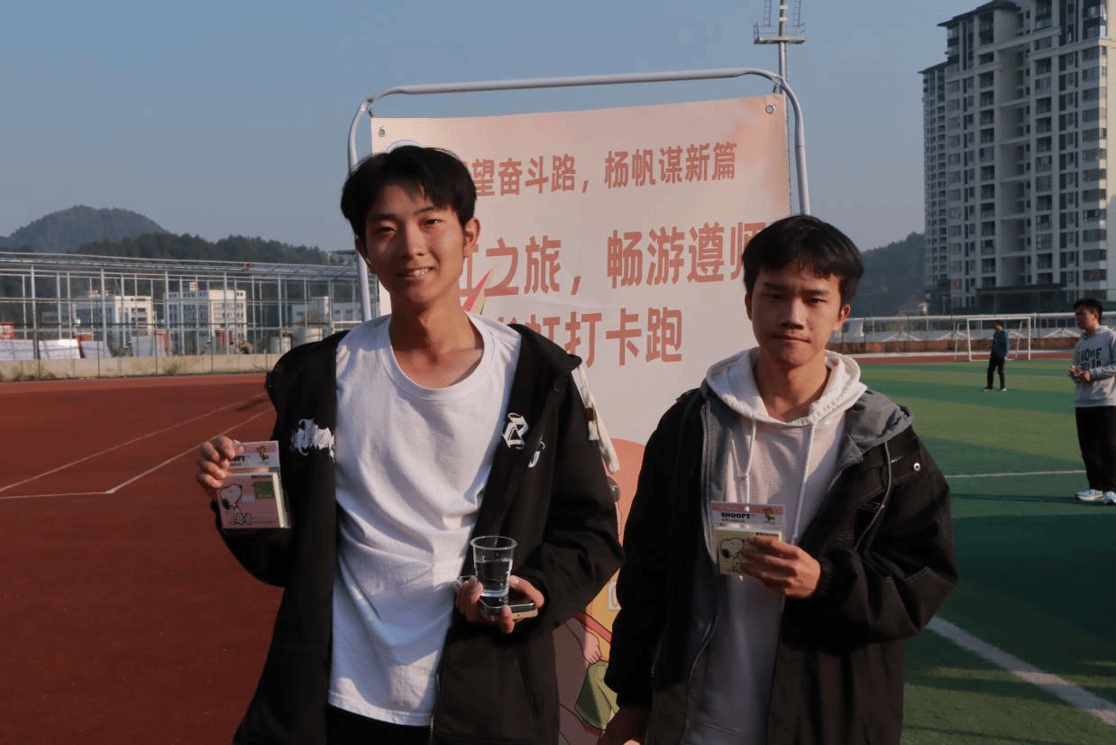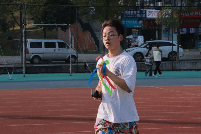 活动开始不久就迎来了第一位胜利者,他手中的彩带随风而动,脸上洋溢着喜悦,这是青春最美好的模样。现场工作人员为其送上水和礼品,庆贺他的胜利并为他留下珍贵的影像。随着时间的推移越来越多的同学完成打卡,当最后一位同学递出手中的彩色丝带,也预示着这场活动落下帷幕。