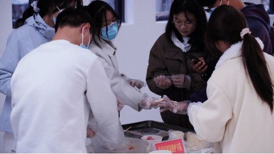 在活动过程中,来自不同地方的同学们都积极分享家乡的饮食文化和风俗习惯。同学们还分享了自己家乡包饺子的方法和技巧,在一片欢声笑语中,各种形态的饺子纷纷呈现。包好的饺子被煮熟后,现场还设置了兼顾南北方口味的调料区,让同学们在品尝饺子的同时,感受各地饮食文化的差异。
