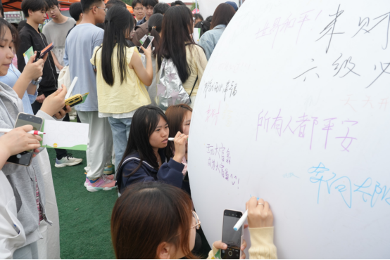 在心理游园会活动区现场,同学们踊跃参与众多融合心理元素的趣味游戏和特色活动,在各个游戏摊位前排起了长队。大家全身心投入到游戏中,欢笑声、加油声此起彼伏,现场一片热闹景象。同学们在轻松愉快的氛围中,体验到心理健康的重要性,也进一步推动了微信买球官方网站“五育促五心”教育理念的落地实施。