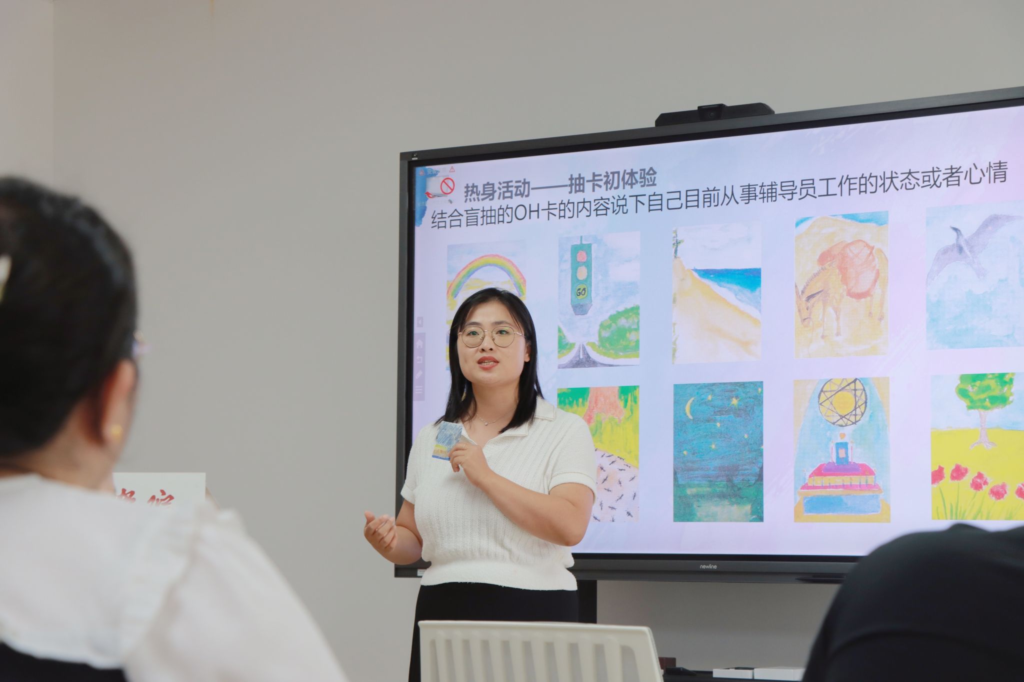 活动第二阶段,教师教育学院辅导员李爽分享了“做一名勇于破圈的辅导员”的主题汇报,她指出,人生是一场不断破圈的游戏,并利用OH卡小游戏等从多个方面分析了如何破圈,以转化辅导员所面临的职业迷茫、倦怠的各个时期。