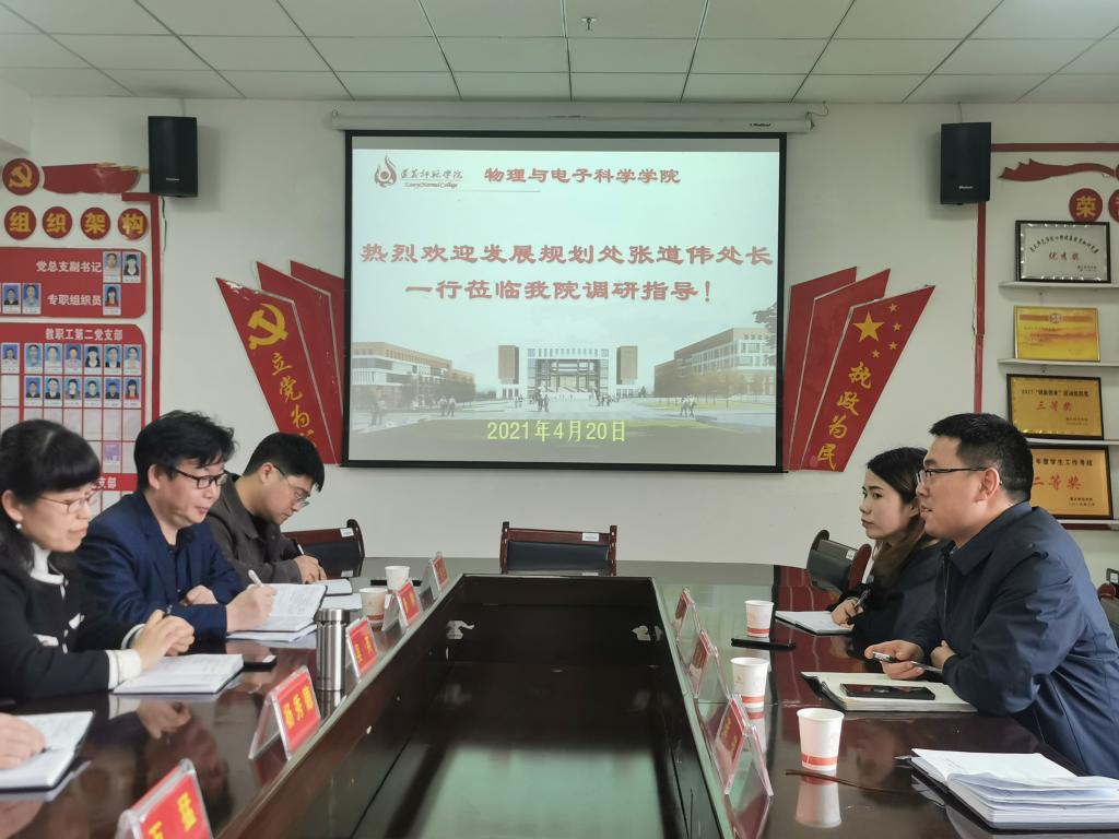 为扎实推进学校“我为群众办实事”工作,通过察民情访民意,科学谋划学科发展思路和举措,全面提升学科建设水平,4月19日至20日,发展规划处(学科办)张道伟处长一行到教师教育学院(遵义家庭教育学院)、物理与电子科学学院及工学院进行了微信买球官方网站学科建设专题调研座谈会。