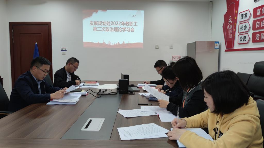 4月22日下午,发展规划处(学科办)在行政楼424召开2022年第二次政治理论学习会。会议由党支部书记、处长张道伟主持,部门全体人员参加。