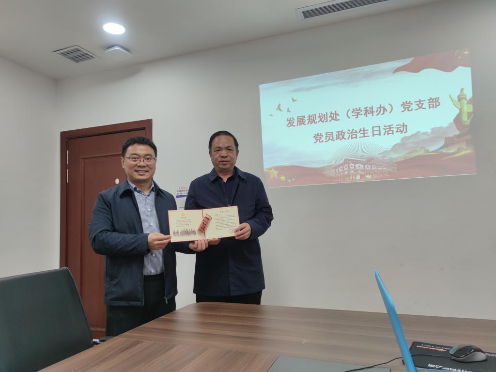 2021年4月28日,发展规划处(学科办)党支部在行政楼424为中共党员刘肇军同志过“政治生日”,活动由支部书记张道伟主持,支部全体党员参加。