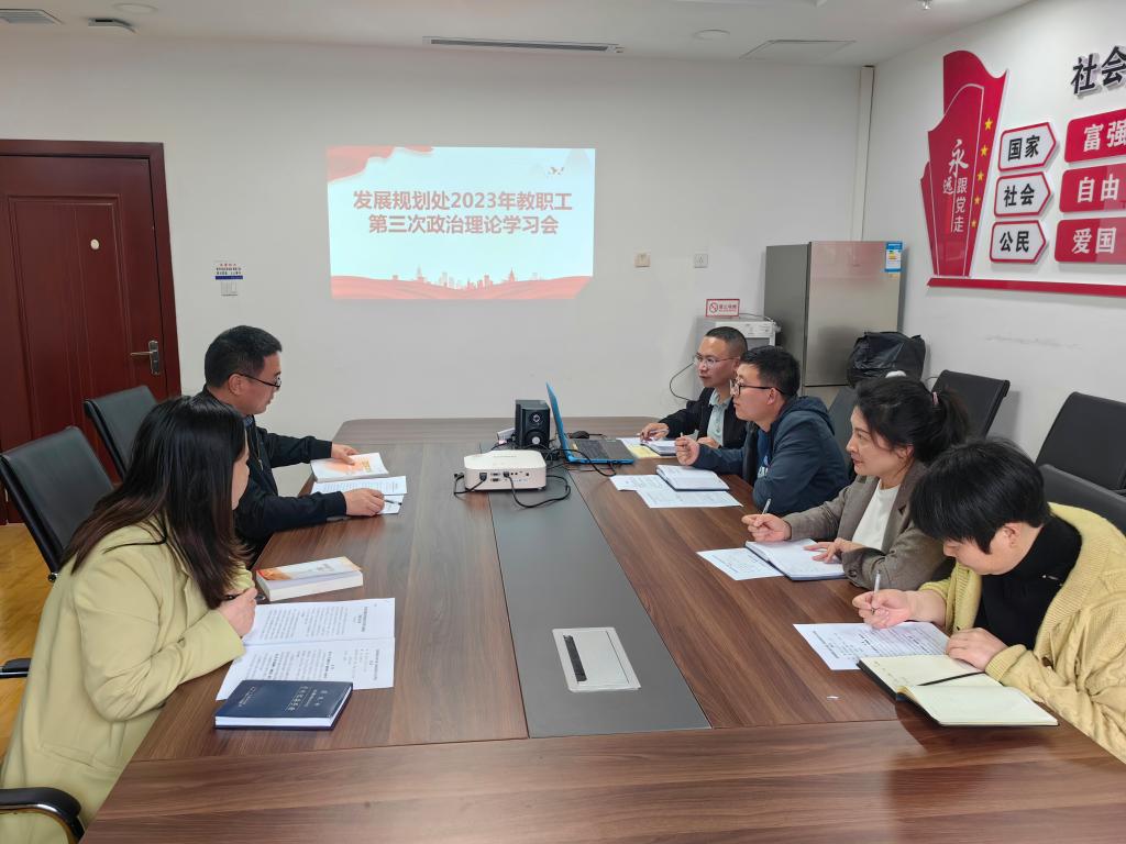 4月11日,发展规划处在行政楼424召开2023年第三次政治理论学习会。会议由党支部书记、处长张道伟主持,部门全体人员参加。