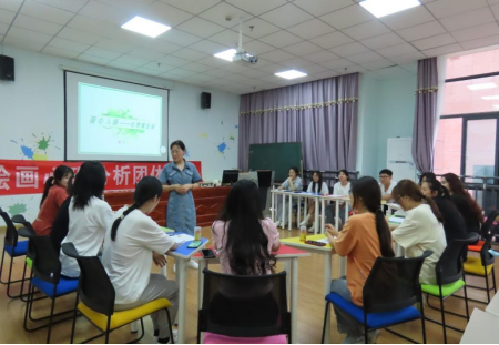 许秀芬老师将绘画心理学功能与团体辅导相结合,向同学们介绍绘画心理分析及团体辅导的基本概念、发展和本次团体辅导的内容安排,带领同学们以“滚雪球”的方式进行自我介绍,在开放、信任、温馨的团体氛围中开展绘画活动,引导团体成员通过讨论、分享自己的绘画作品及心得感受的方式积极探索、表达自我,鼓励同学们把本次团辅活动的收获运用到学习生活当中。