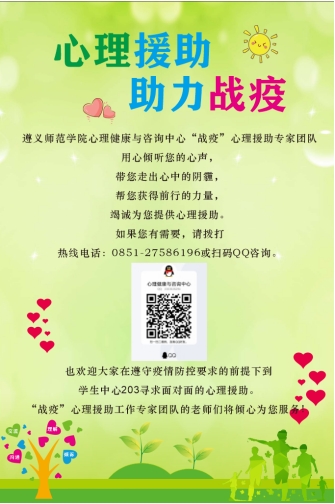 2.从10月27日起,有需求的师生员工可以通过拨打心理援助热线电话进行咨询,热线电话号码:0851-27586196或扫码QQ咨询。