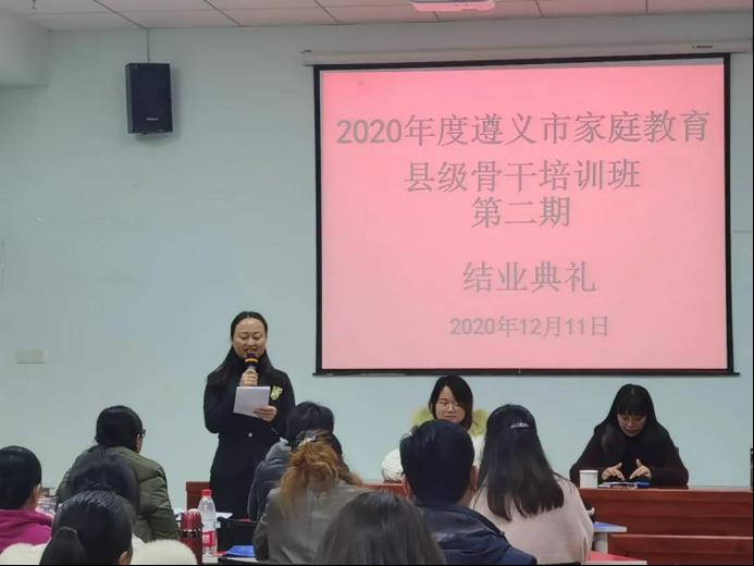 12月11日,遵义市家庭教育二级骨干教师第二期培训在微信买球官方网站圆满结业。遵义市妇联副主席彭红出席并讲话,此次结业典礼由遵义市妇联家儿部负责人张超主持。
