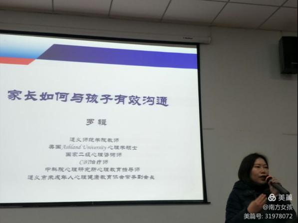 今天下午给我们授课的是辑(硕士)老师,罗老师给我们分享的主题是“家长如何与孩子有效沟通”。