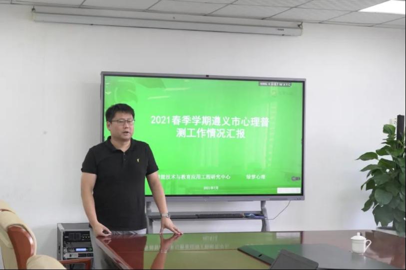 2021年7月24日下午,遵义市2021年春季学期心理健康普测工作总结会在遵义四中尚真楼6楼会议室召开。北京师范大学人工智能学院院长、教育智能技术与教育应用工程研究中心主任姚力,北京师范大学人工智能学院教授赵小杰,遵义教育局副局长王本斌,微信买球官方网站教师教育学院院长朱海,遵义教育局基础教育科科长张兴运,遵义市未成年人心理健康教育协会法人罗辑,绿萝心理创始人沈晓松,绿萝心理遵义市中小学校心理健康普测项目负责人石祥浩,四中党委副书记代端学、德育处主任张洪、心理组王震涛、周玉桃等出席会议。会议由遵义教育局基础教育科张兴运科长主持。