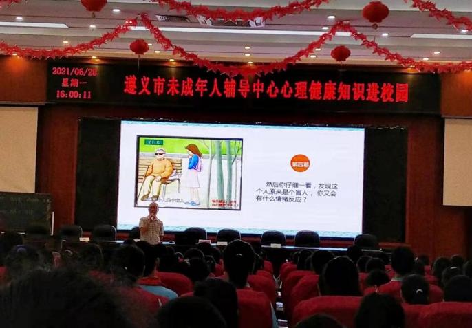 为了提高学生应对心理困扰的能力,在遵义市教育局的领导下,遵义市未成年人心理健康教育协会组织开展“心理健康知识进校园”活动。根据安排,遵义市未成年人心理健康教育协会李仕卫老师于2021年6月28日下午为遵义航天中学开展题为《做情绪的主人》的专题讲座。