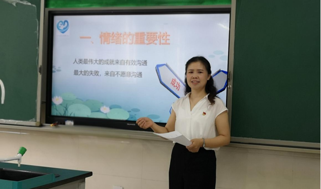 李老师和同学们畅谈了情绪的重要性,着重强调了情绪给我们的身心健康和学习生活带来的影响。紧接着,李老师根据自己多年来的工作经验,向同学们讲解了管理和摆脱不良情绪的方法,鼓励同学们积极乐观地面对困难和挫折。