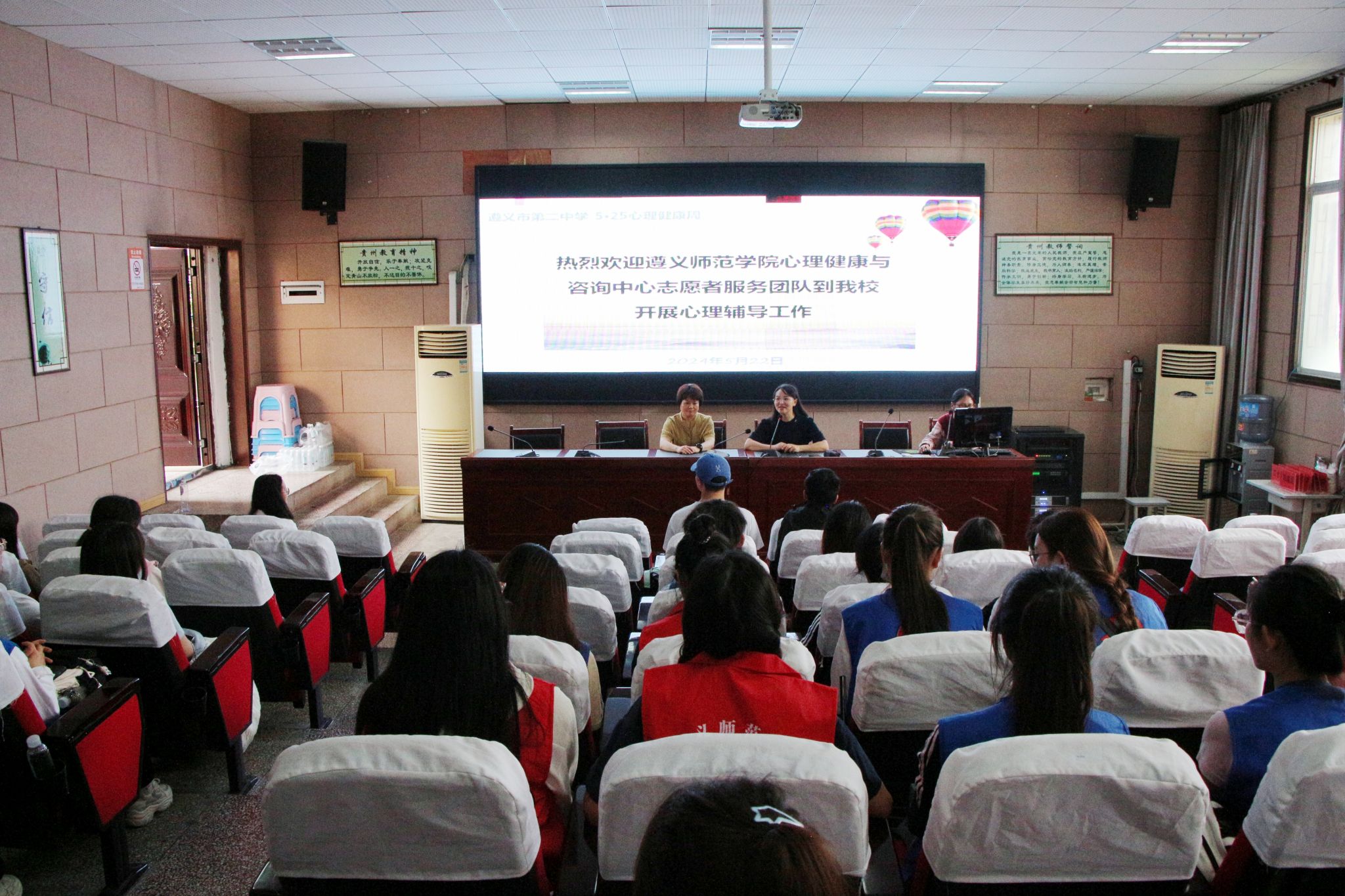 2024年5月22日,微信买球官方网站心理健康与咨询中心心理志愿者服务团队在中心专职教师宋晓华的带领下应邀走近遵义市第二中学,开展了一次丰富多彩的心理健康服务活动。