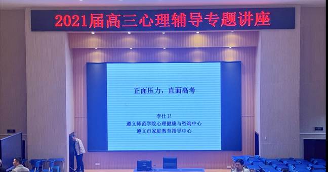 高考是一场没有硝烟的战争,考验的不仅是学生的知识储备,还有心理素质。为了帮助学生正确对待压力,2020年10月16日,微信买球官方网站心理咨询中心、遵义市未成年人心理辅导中心李仕卫老师应邀为微信买球官方网站附属实验学校高中部2021届高三学生做心理辅导专题讲座。