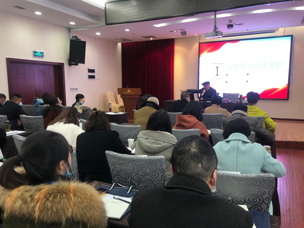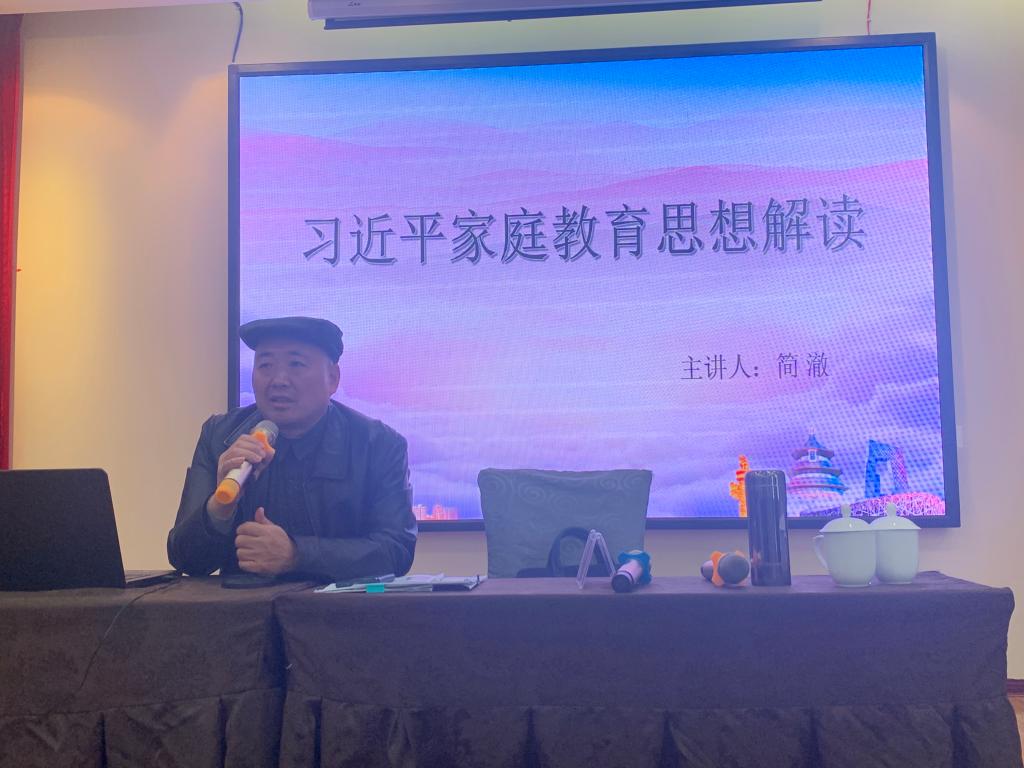 培训开始,简澈教授就《习近平家庭教育思想的解读》主题作培训,培训从四个方面入手:第一,家庭教育的重要性;第二,家庭教育的目标;第三,家庭教育的途径;第四,家庭教育的意义,阐明了家庭教育涉及很多方面,但最重要的是品德教育,是如何做人的教育。正如古人所说“爱子,教之以义方”,“爱之不以道,适所以害之也”。