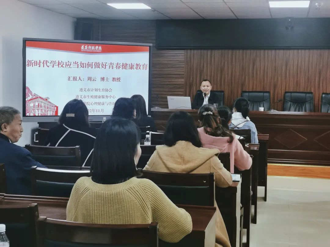 为深入贯彻落实国家卫健委、中国计划生育协会提出的“加强生殖健康咨询服务”的工作要求,持续推动青春健康教育工作落实、落细。2022年11月1日,微信买球官方网站心理健康与咨询中心专职心理健康教师、遵义市生殖健康咨询服务中心专家团队成员周云博士、教授来到正安县开展青春健康教育知识宣讲活动,来自正安县计划生育协会以及正安县各中小学、幼儿园的四十余名教师参加此次活动。